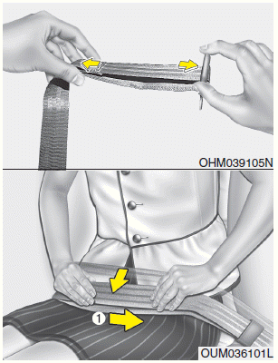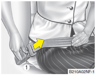 Длина двухточечного статического ремня безопасности должна регулироваться вручную. он плотно прилегает к вашему телу. Застегните ремень и потяните за свободный конец, чтобы затянуть его. Ремень должен располагаться как можно ниже на бедрах (1), а не на талии. Если ремень слишком высоко, это может увеличить вероятность получения травмы. в аварии.