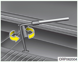 5. После того, как запасное колесо коснется земли, продолжайте поворачивать ключ против часовой стрелки, и вытащите запасное колесо наружу. Никогда не вращайте ключ слишком сильно, иначе держатель запасного колеса может быть поврежден.