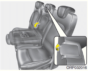 При складывании спинки заднего (2-го и/или 3-го ряда) сиденья вставьте пряжку в карман между спинкой заднего сиденья и подушкой. Это может предотвратить пряжку от повреждена спинка заднего сиденья.