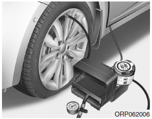 9. При включенном положении кнопки запуска/остановки двигателя или положении ключа зажигания включен, включите компрессор и дайте ему поработать примерно 5-7 минут, чтобы заполнить герметик до необходимого давления. (см. «Шины и колеса», глава 9). давление в шине после заполнения не имеет значения и будет проверено/откорректировано позже.
