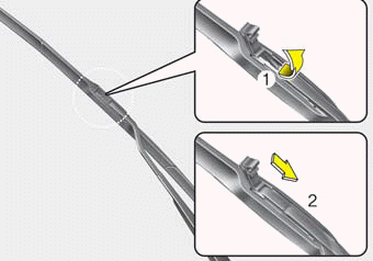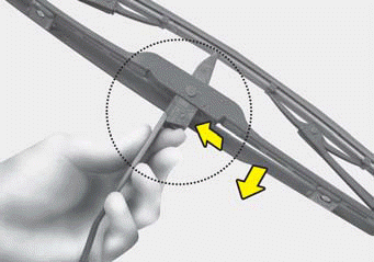 2. Поднимите зажим щетки стеклоочистителя. Затем потяните блок лезвий вниз и убери это.