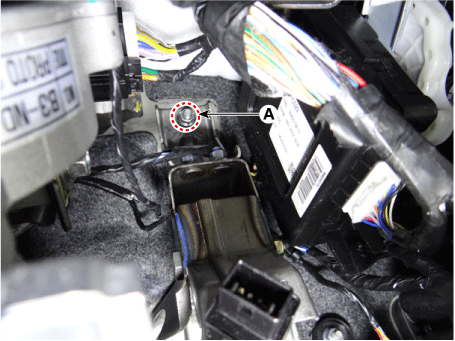 Снимите нижнюю панель аварийной подушки. (См. Кузов (внутри и снаружи) — «Нижняя панель подушки безопасности») |