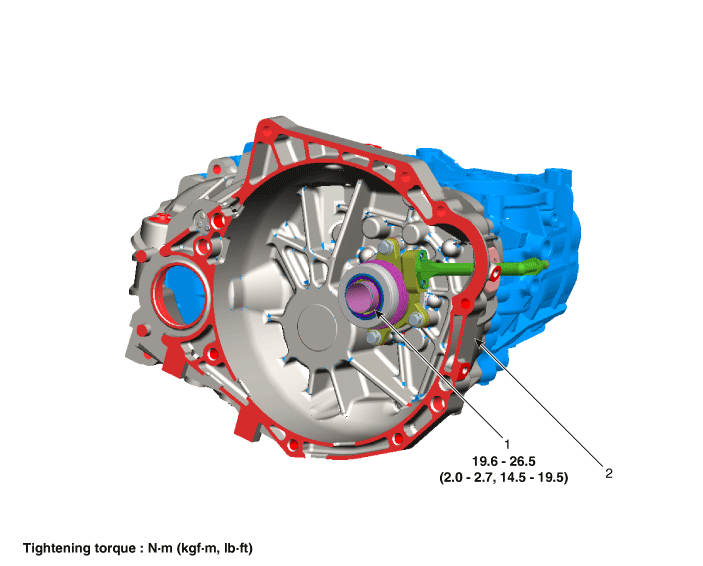 Снимите механическую коробку передач в сборе. G 1,6 MPI (см. Система механической трансмиссии — «Механическая трансмиссия») D 1.6 TCI-NEW-U (см. Система механической коробки передач — «Механическая коробка передач») G 1.6 T-GDI GAMMA (см. Система механической коробки передач — «Механическая коробка передач») |