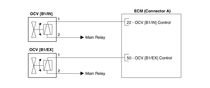 - масляный регулирующий клапан CVVT (OCV), который подает моторное масло на фазовращатель кулачка. или отсекает моторное масло от кулачкового фазовращателя в соответствии с PWM (Pulse With Модуляция) сигнал управления ECM.