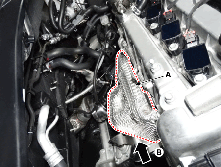 Снимите термозащитный кожух (А) после ослабления крепежных болтов.