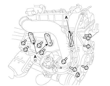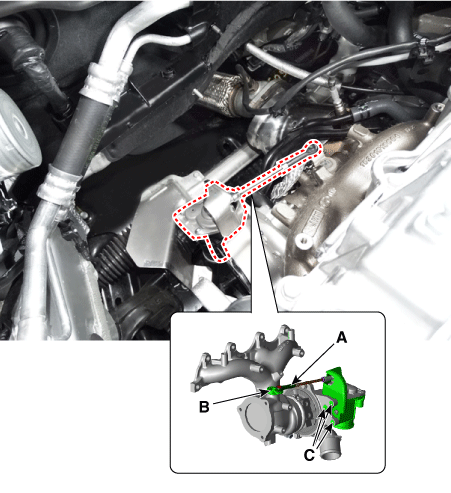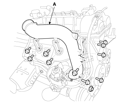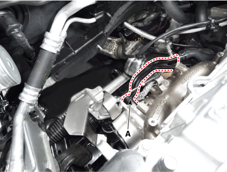 Снимите водяную трубу и шланг турбонагнетателя (A).