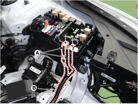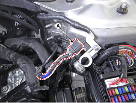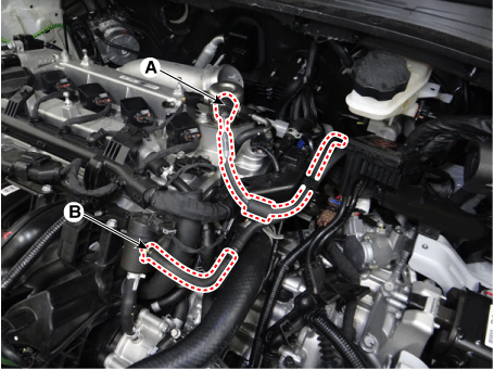 Отсоедините разъем электромагнитного клапана RCV (A) и давление наддува. разъем датчика (BPS) (B).