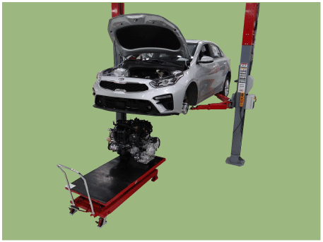 Поддержите двигатель и коробку передач в сборе с помощью подъемного стола. |
