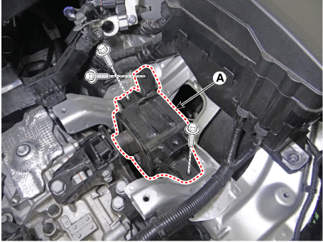 Снимите кронштейн крепления двигателя (А).