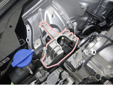 Снимите опорный кронштейн крепления двигателя (А).
