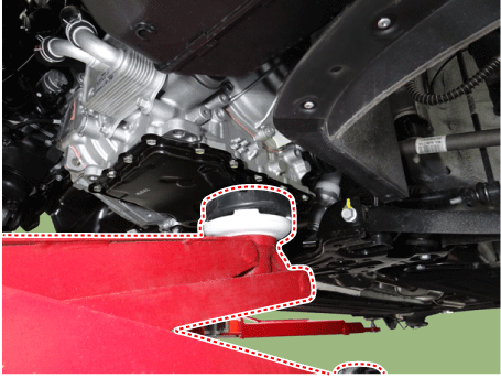 Установите домкрат под коробку передач, чтобы поддержать ее.
