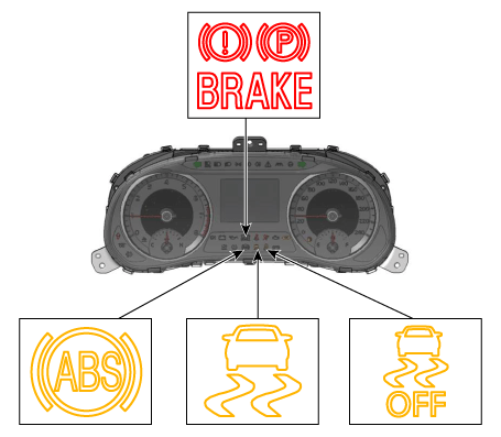 После включения зажигания ЭБУ непрерывно диагностирует отказ системы (самодиагностика). Если обнаружен сбой системы, ЭБУ информирует водителя о сбое системы. через контрольную лампу BRAKE/ABS/ESC (предупреждение отказоустойчивости).