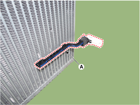 Снимите датчик температуры испарителя (А) с сердцевины испарителя.