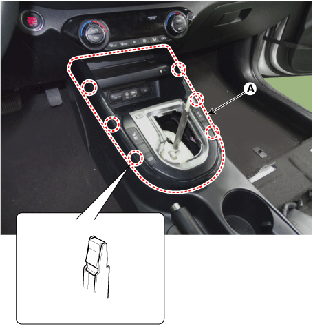 Снимите ручку переключения передач и пыльники (A), потяните их вверх.