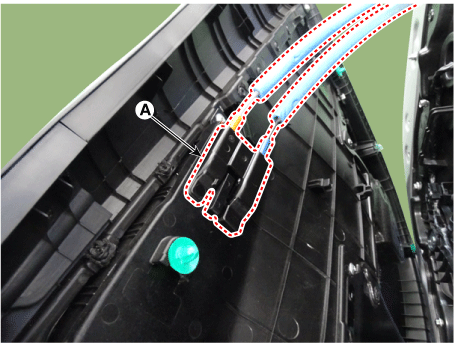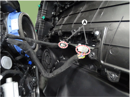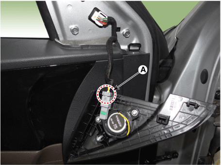 Отсоедините разъем динамика Twitter (A), а затем снимите переднюю внутренняя крышка квадранта двери.
