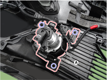 Снимите переднюю противотуманную фару (А), ослабив винты.