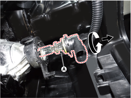 Замените лампу после извлечения патрона противотуманной фары (A), повернув его в против часовой стрелки.
