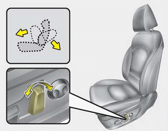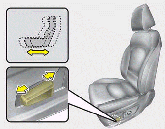 Переднее сиденье можно отрегулировать с помощью переключателя управления, расположенного на снаружи подушки сиденья. Перед поездкой отрегулируйте сиденье по правильное положение, чтобы легко контролировать руль, педали и переключается на приборную панель.
