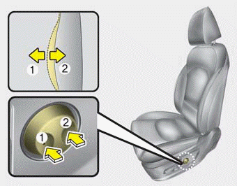 Поясничную опору можно регулировать нажатием на поясничную опору переключатель со стороны водителя сиденье. Нажмите на переднюю часть переключиться на усиление поддержки или задняя часть переключателя для уменьшения поддерживать.