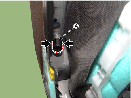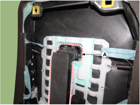 Снимите защиту (А) с каркаса спинки переднего сиденья.