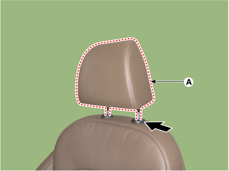 Нажмите на стопорный штифт, снимите подголовник переднего сиденья (А).