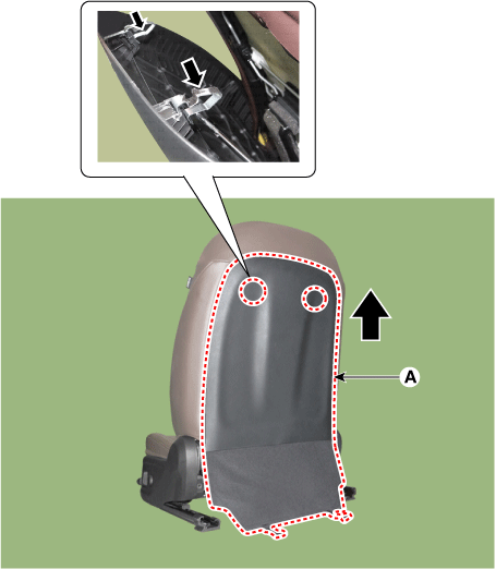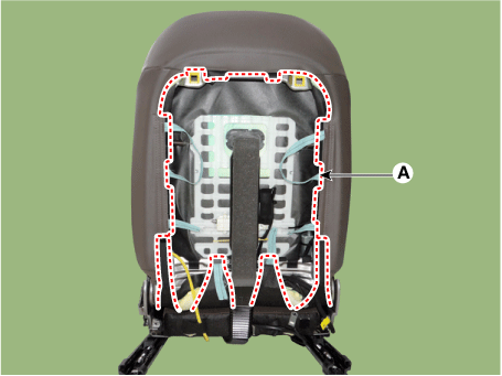Снимите обивку спинки переднего сиденья (А) с рамы спинки переднего сиденья.