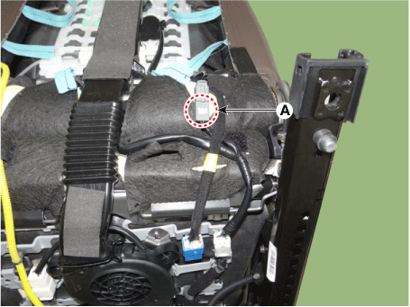 Отсоедините разъем обогревателя спинки сиденья (А).