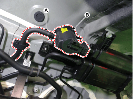 Снимите воздушный фильтр топливного бака (В) после откручивания болта.
