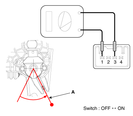 Поверните рычаг переключателя в направлении стрелки, чтобы проверить работу точка (А).
