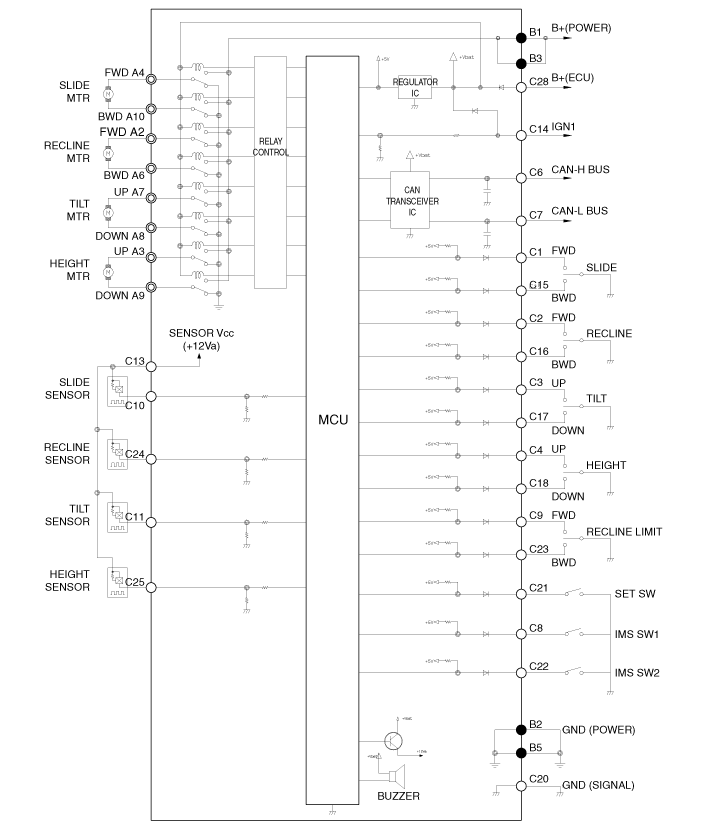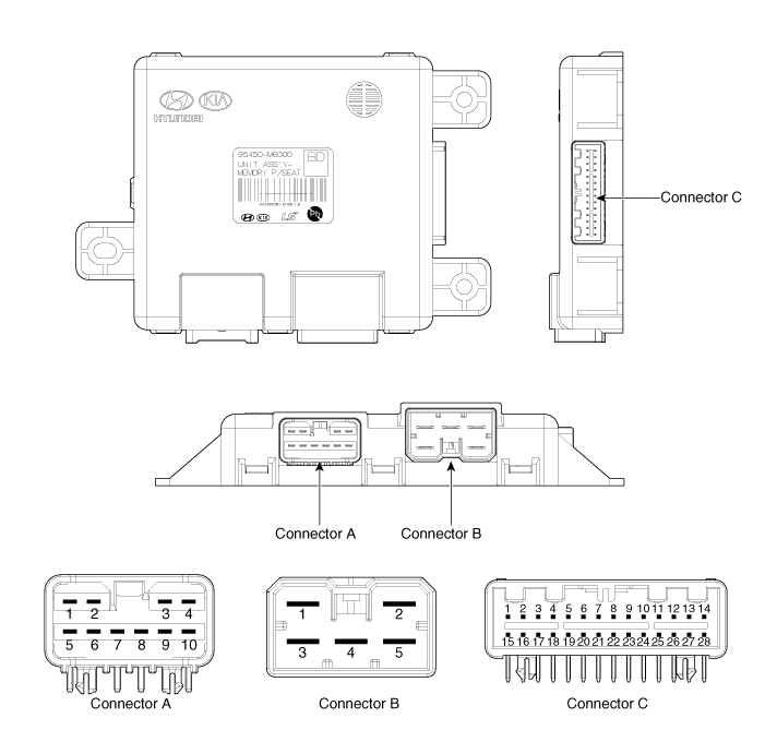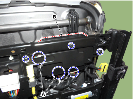 Снимите блок сиденья с памятью (B), ослабив винты после отсоединения. разъем (А).