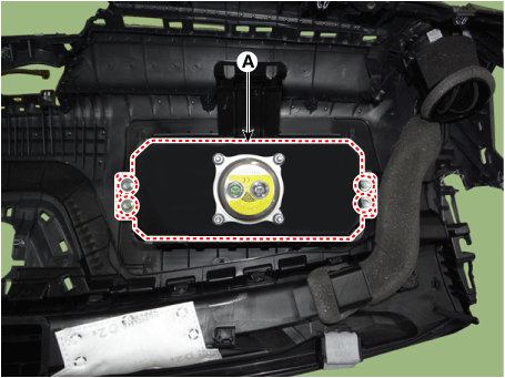 Ослабьте болты крепления и снимите подушку безопасности пассажира (А).