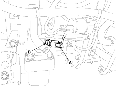 Отсоедините разъем (А) и снимите датчик давления масла (В).