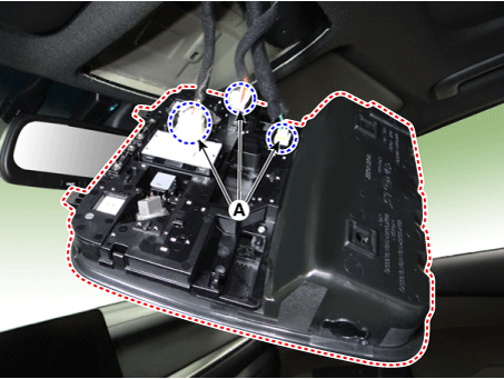Снимите лампу верхней консоли. (См. Система освещения — «Лампа на потолочной консоли») |