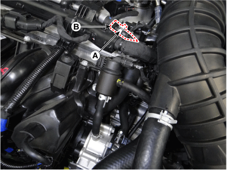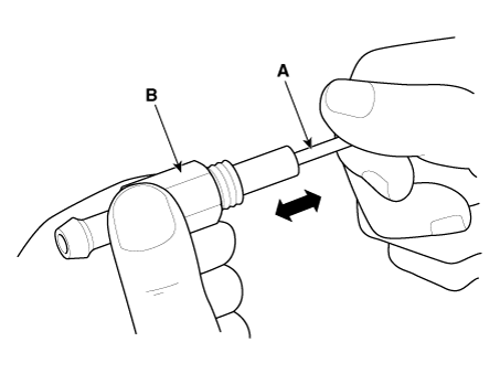 Вставьте тонкую палочку (А) в клапан PCV (В) со стороны с резьбой. чтобы убедиться, что поршень движется.