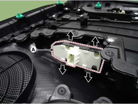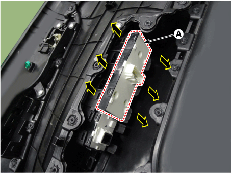 Снимите узел переключателя стеклоподъемника (А), потянув за оба конца держателей переключателей.