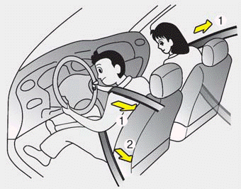 1. Ремень безопасности должен быть пристегнут правильно и отрегулировать до нужного позиция. Пожалуйста, прочтите и следуйте всем важной информации и меры предосторожности в отношении вашего автомобиля средства безопасности пассажиров, в том числе ремни безопасности и подушки безопасности - это приведены в данном руководстве.