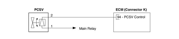 Электромагнитный клапан управления продувкой (PCSV) установлен на расширительном бачке и управляет проход между адсорбером и впускным коллектором. это электромагнитный клапан и открыт, когда ECM заземляет линию управления клапаном. Когда проход открыт (PCSV ON), пары топлива, хранящиеся в адсорбере, передаются во впускной коллектор.