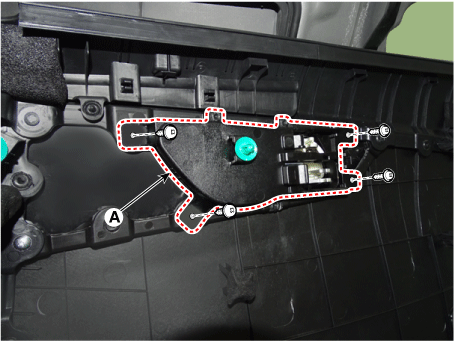 Ослабив крепежные винты, снимите внутреннюю ручку задней двери. (А).