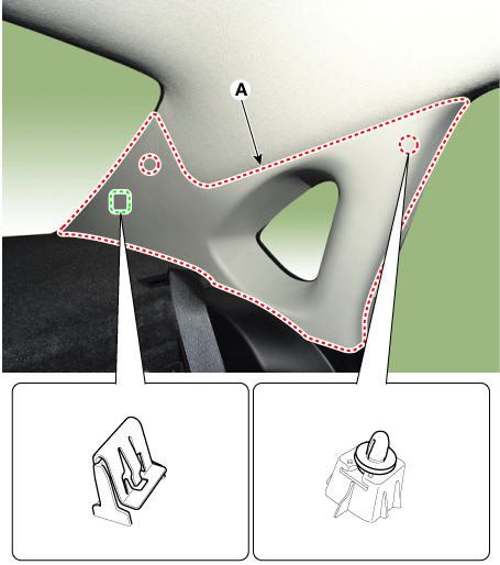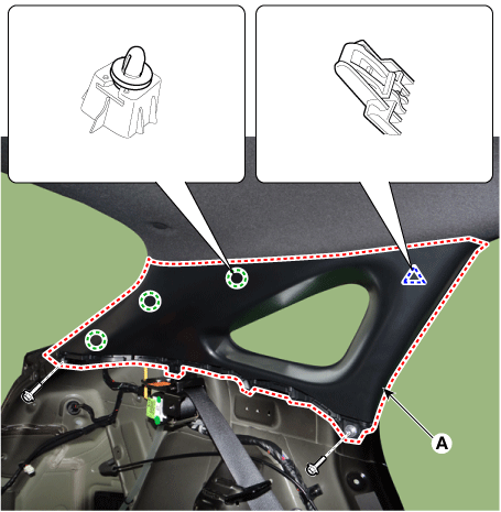 Отверните болты крепления и снимите облицовку задней стойки (А).