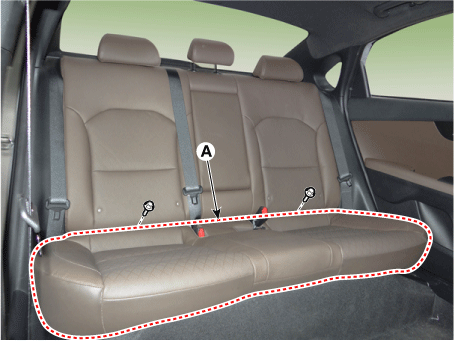 Ослабьте болты крепления, снимите подушку заднего сиденья в сборе (А).