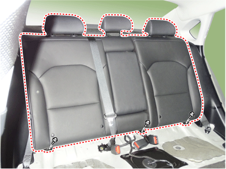 Снимите подушку заднего сиденья в сборе. (См. Заднее сиденье — «Заднее сиденье в сборе») |