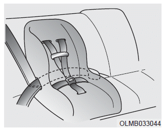 1.Установите детскую удерживающую систему на заднее сиденье и проложите колени / плечо ремень вокруг или через ребенка сдержанность, после сдержанности инструкции производителя.