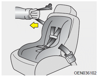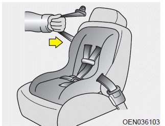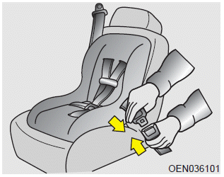 Поскольку все ремни безопасности пассажира двигаются свободно в нормальных условиях и блокировать только в крайних или аварийных ситуациях состояния (аварийная блокировка режиме) необходимо вручную вытащить ремень безопасности полностью вытянут, чтобы переключить втягивающее устройство на «Автоматическую блокировку» режим для фиксации детского удерживающего устройства.