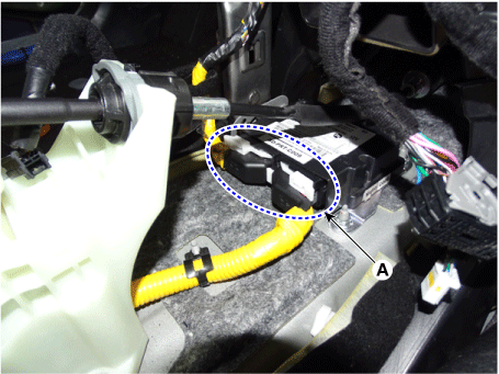Отсоедините разъем модуля управления дополнительной системой пассивной безопасности (SRSCM). (А).