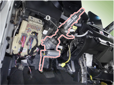 Ослабьте болт (А) и снимите рулевое колесо (В).