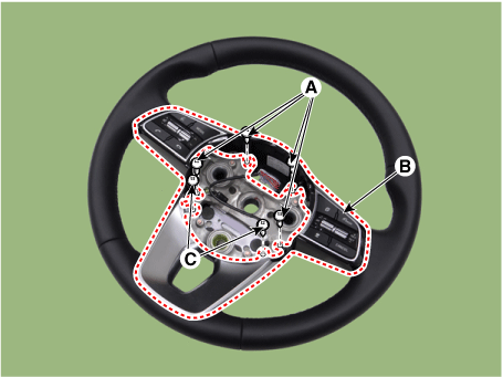Ослабьте болт (А) и снимите рулевое колесо (В).