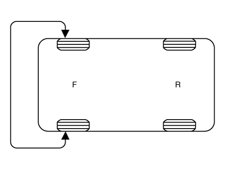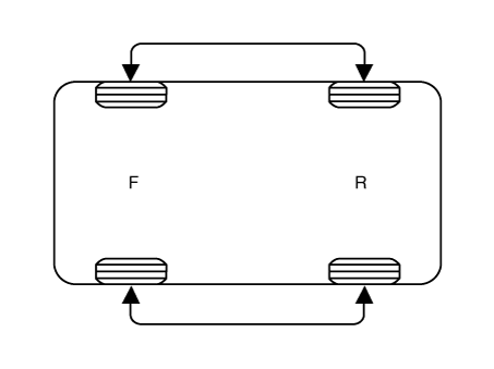 Если руль тянет в одну сторону, поменяйте колеса в соответствии со следующей порядок вращения колеса.