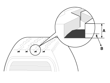 Если остаточная глубина протектора (А) меньше предела, замените шина.