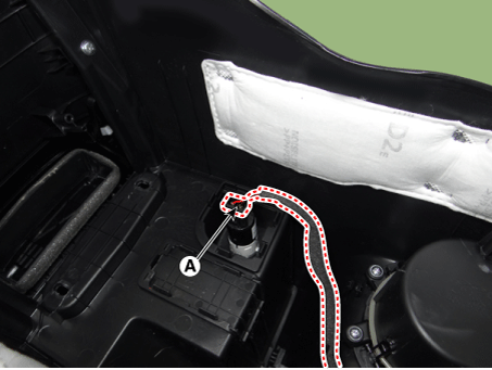 Отсоедините отрицательную (-) клемму аккумуляторной батареи. |