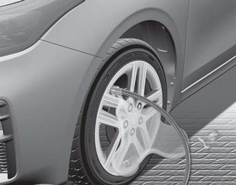 Когда вы используете комплект Tire Mobility Kit, датчики давления в шинах и колесо может испачкаться герметиком. Поэтому, снимите датчики давления в шинах и колеса залиты герметиком и имеют Ваш автомобиль осмотрен уполномоченным Дилер Киа.